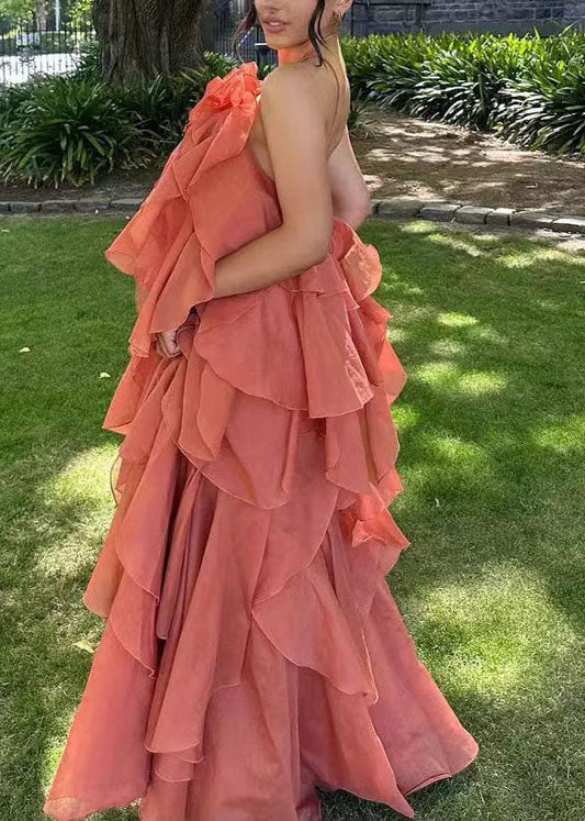Ruffled White Up Lace Backless Maxi Chiffon Sleeveless Boho Dress