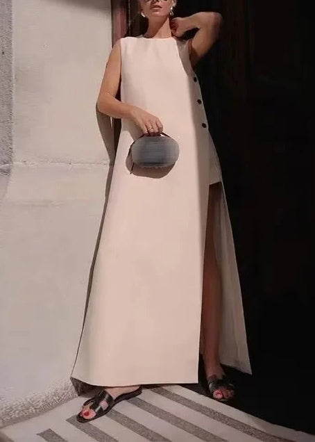 Robe trapèze blanche style bohème en coton, sans manches, avec ouverture latérale, TL008