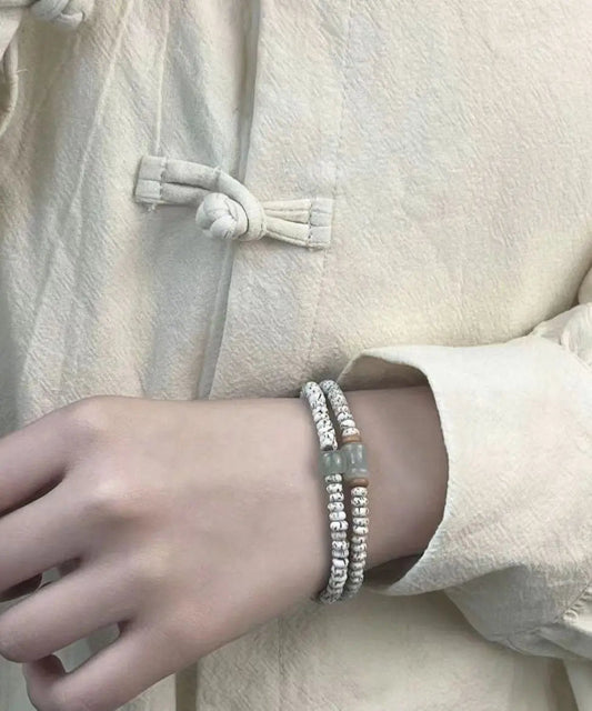 Bracelet élégant à double cercle en jade blanc Bodhi Seed ML1385