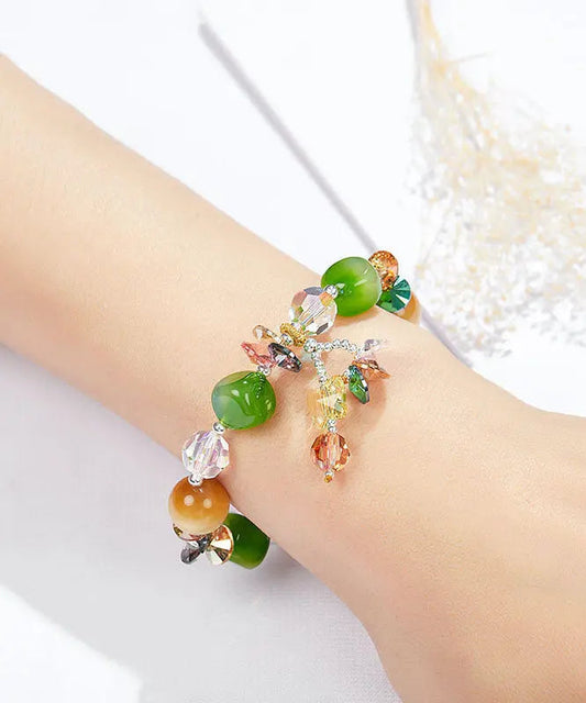 Bracelet à breloques élégant en cristal vert avocat et agate œil de tigre ML0663