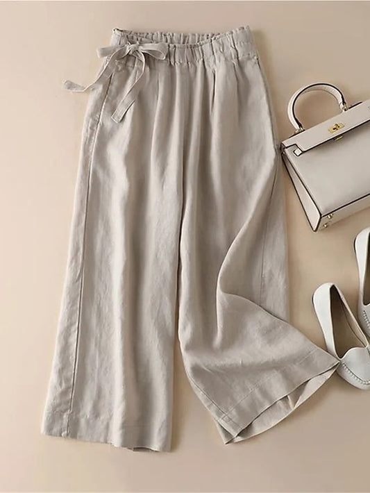 Women's Faux Cotton Linen Wide Leg Slacks Streetwear Casual