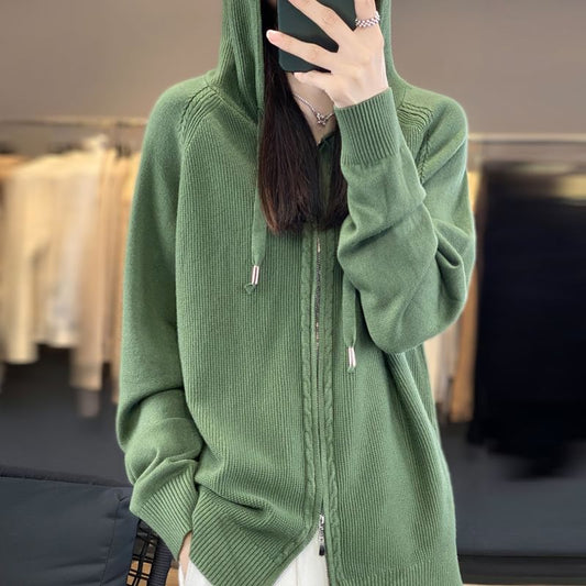 Long-Sleeve Shawl Collar Two Tone Knit Top