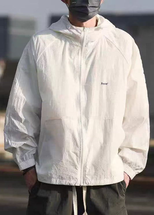 Manteau beige décontracté à rayures glacées, patchwork en soie, capuche UPF 50+, pour homme
