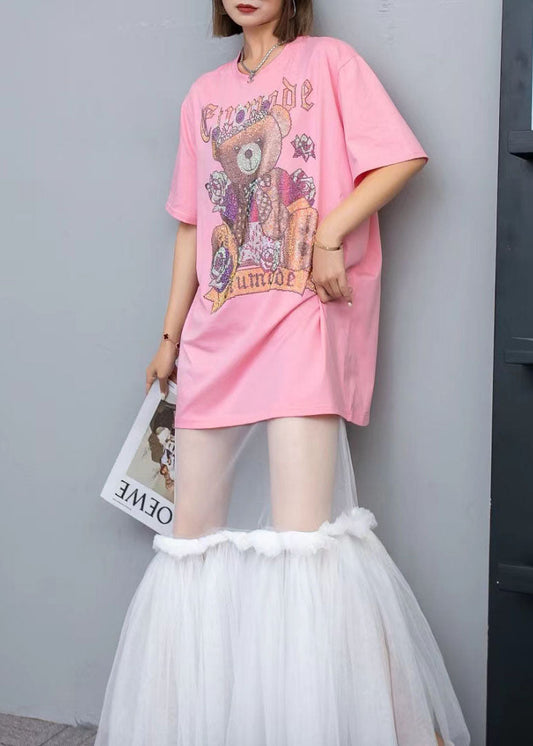 Ensemble deux pièces en coton rose à col rond et jupe en tulle pour l'été LY3946