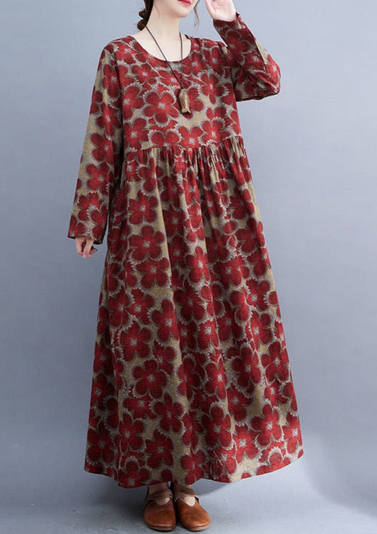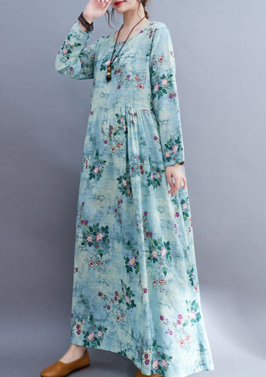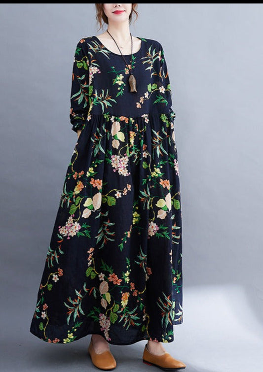 Robe ample à imprimé floral en coton et lin à manches longues LY3977