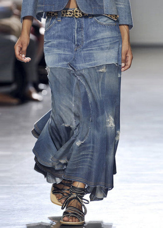 Jupes en jean patchwork asymétriques bleu français été LY3949