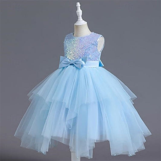 Party Color Sequin Flower Girls' Dress Kids Solid