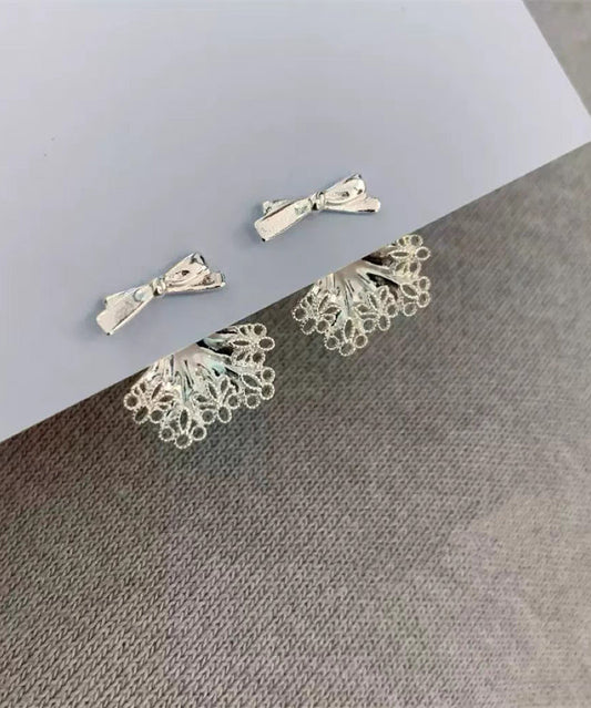 Boucles d'oreilles en argent, dentelle blanche, chic, alliage sterling, clous, nœud, patchwork