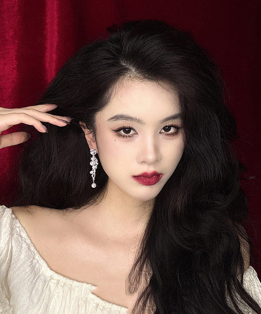 Boucles d'oreilles pendantes élégantes en argent blanc et zircons Stergild