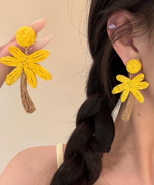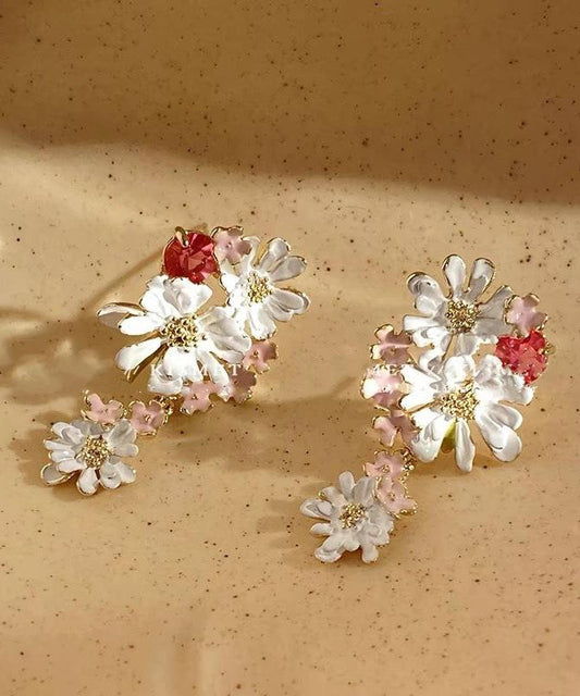 Boucles d'oreilles pendantes en cuivre à motif floral arc-en-ciel