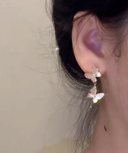 Boucles d'oreilles papillon en cuivre vert avec zircons et cristal