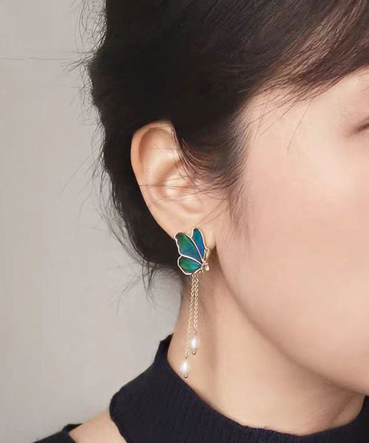 Goutte Perle Papillon Couleur Surdoré Bleu Gland Dégradé Cuivre