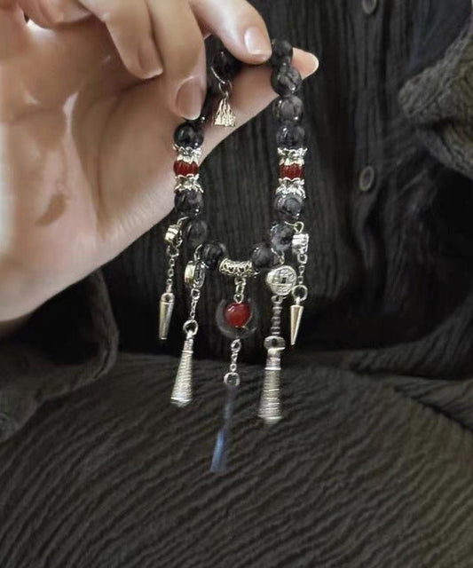 Breloque pompon en pierre précieuse, argent sterling, cristal noir