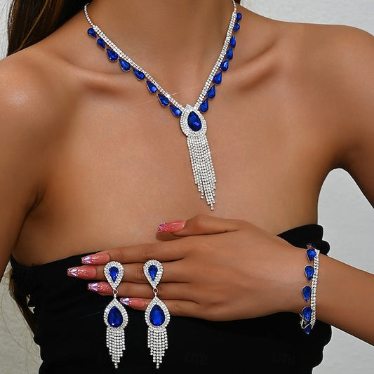 Ensemble de 5 bagues et boucles d'oreilles en alliage avec strass
