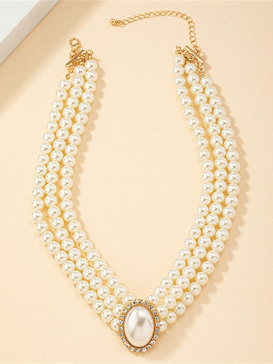Collier décontracté en alliage blanc avec perles graduées YD012