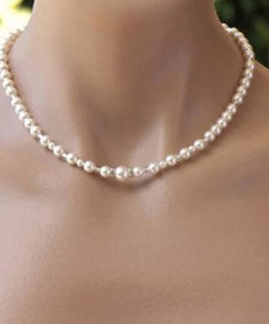 Collier de perles en alliage blanc mignon avec perles graduées YA011