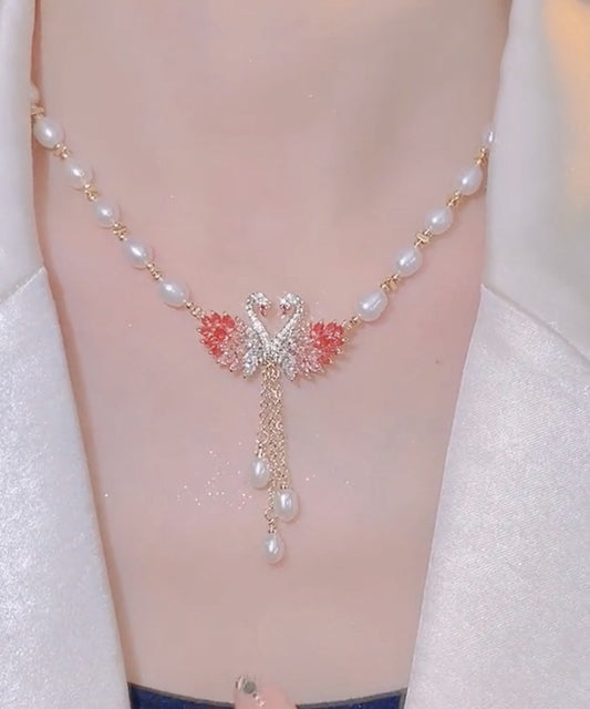 Collier avec pendentif en perles de cygne surdorées en cuivre violet clair YD044