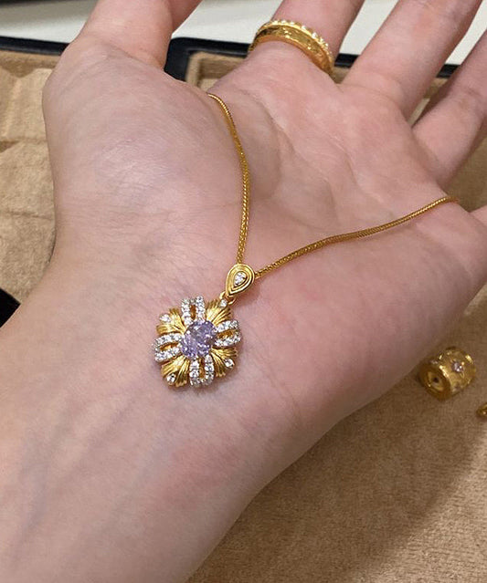 Collier avec pendentif tournesol en cuivre doré et zircons YD042