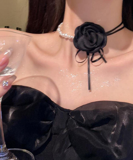 Collier élégant en dentelle noire avec nœud ajouré YA001