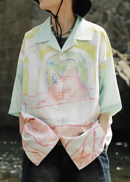 Chemises hawaïennes amples à imprimé col Peter Pan vert pour hommes, été HG031