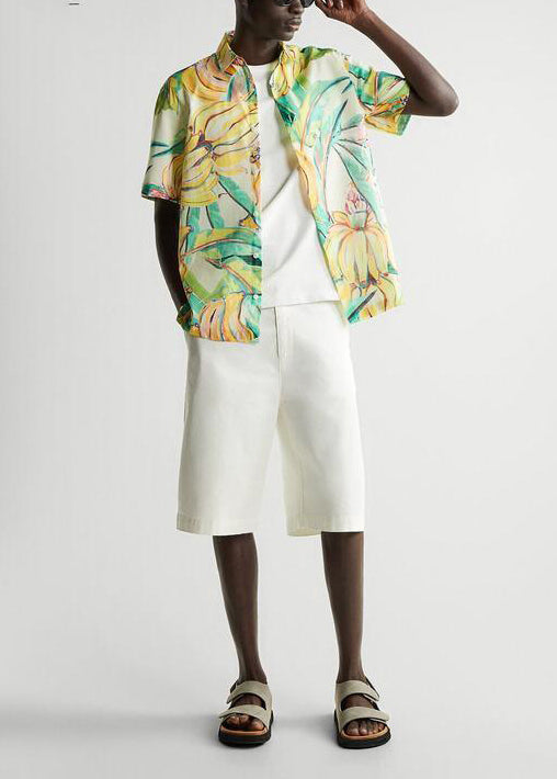 Chemises à la mode jaunes à col Peter Pan pour hommes, tournée de peintures, été HG015