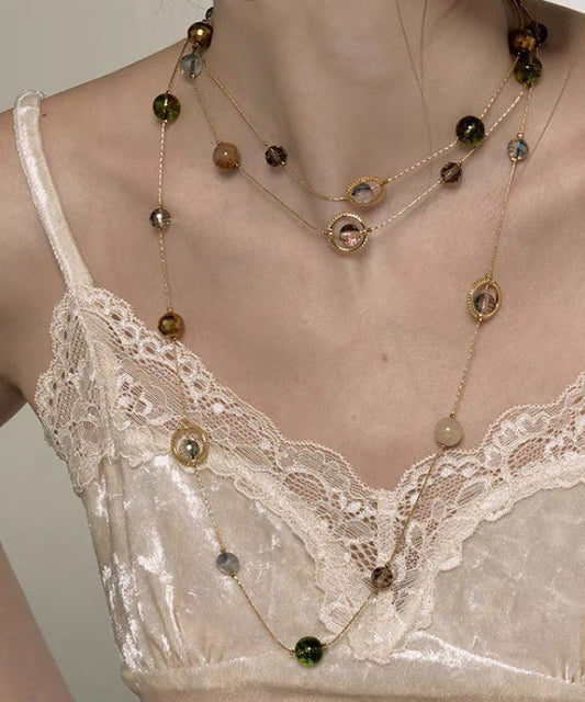 Collier rétro avec pendentif en perles de cristal et zircon, en or, cuivre et résine, YU016