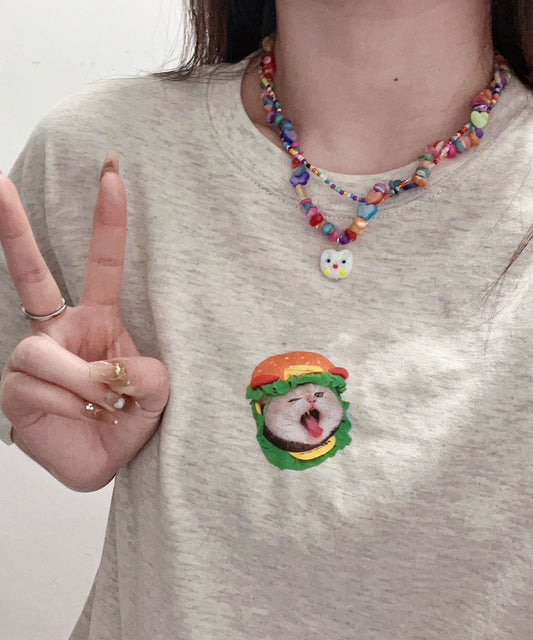 Collier avec pendentif double couche en perles de coquillages et chats noirs chics QU013