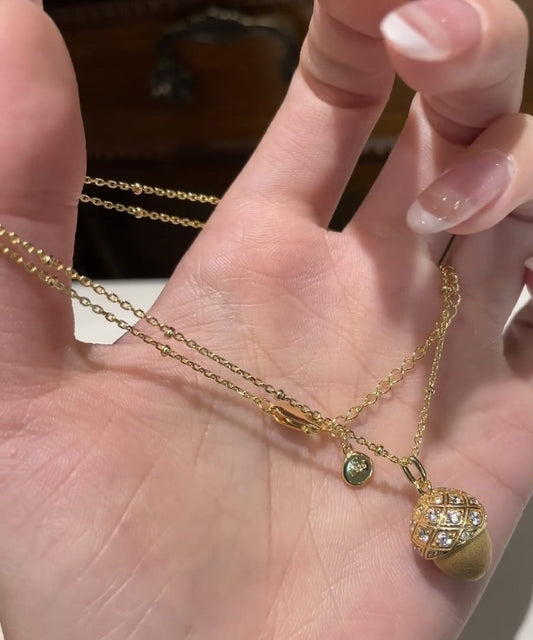 Collier pendentif pomme de pin en argent sterling doré et zircon QI078