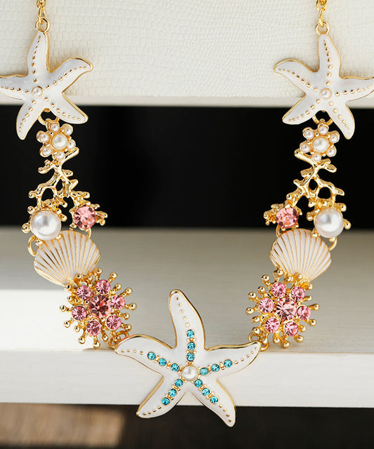 Collier chic en alliage d'argent sterling jaune avec perles en forme d'étoile à cinq branches graduées QD021