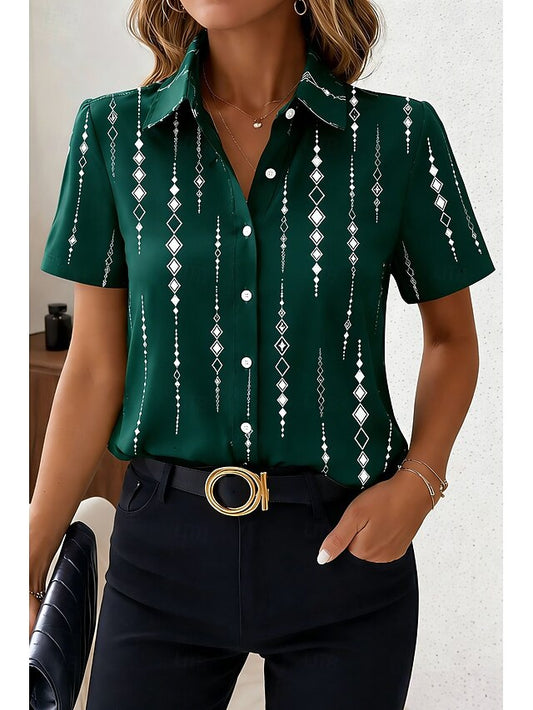 Women's Shirt Buttons Print Graphic Geometric Vintage
