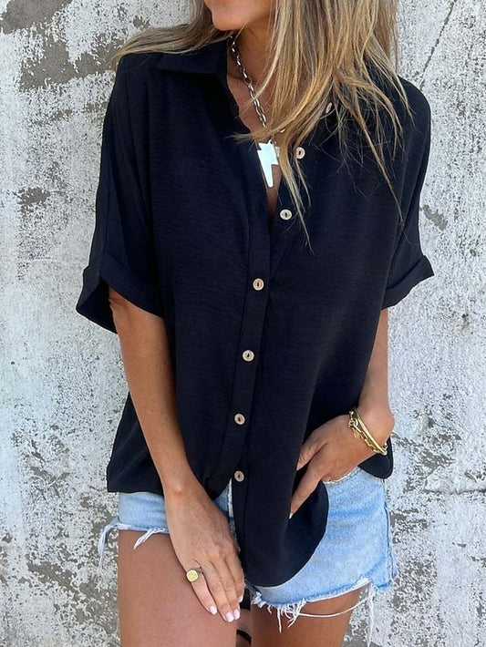 Women's Shirt Buttons Plain Basic Modern Half Sleeve Shirt