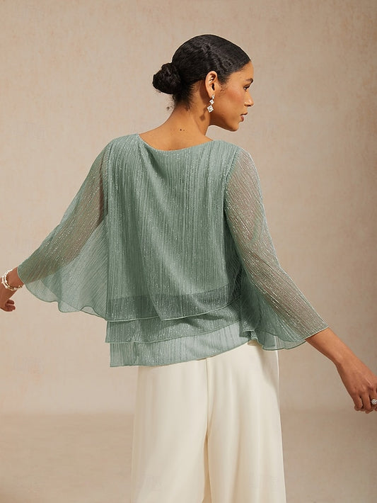 Women's Blouse Chiffon Tops Sequins Pleated Patchwork