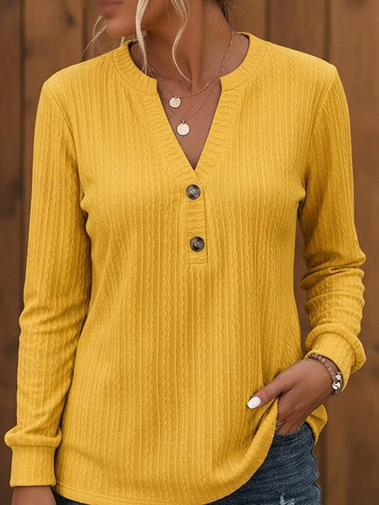 Women's T Shirt Tee Top Buttons Solid Color Elegant Fashion