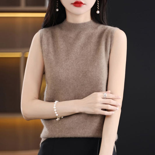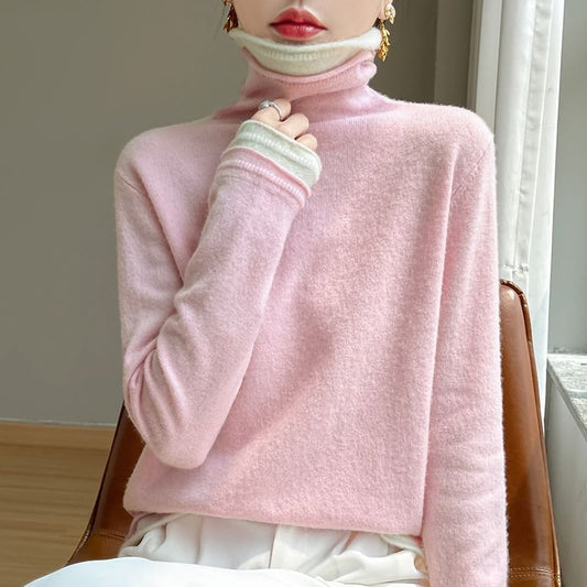 Mock Two-Piece Long-Sleeve Turtleneck Knit Top