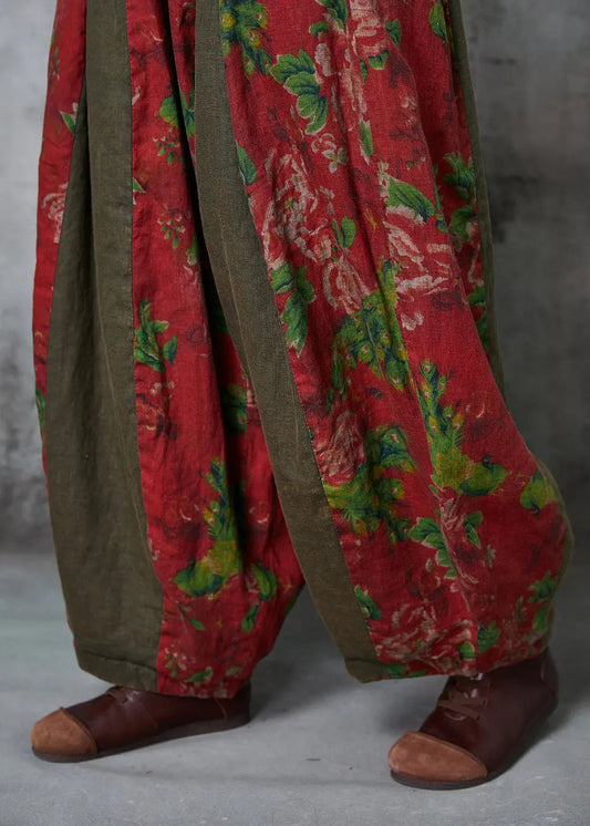 Pantalon sarouel vintage surdimensionné en lin à imprimé patchwork rouge printemps JK1060