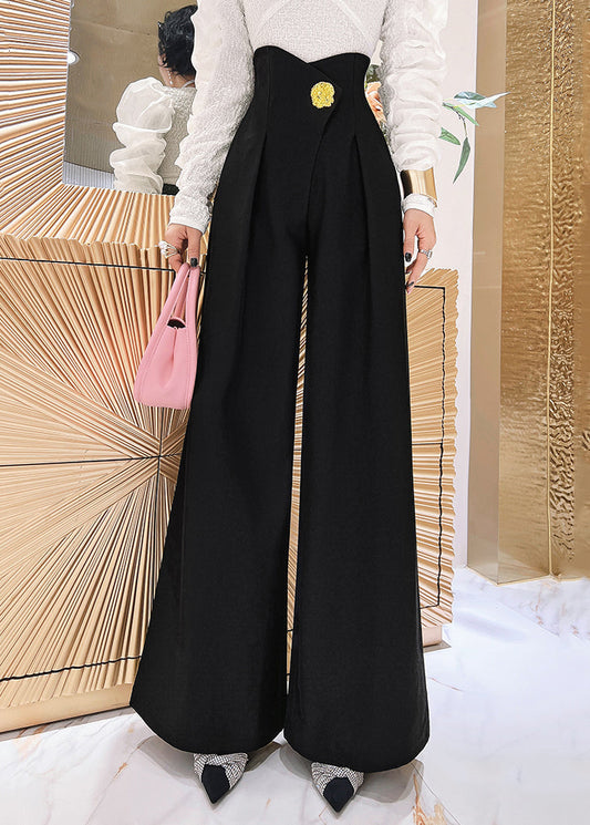 Pantalon noir froissé taille haute en élasthanne patchwork avec poches pour l'automne LY9050