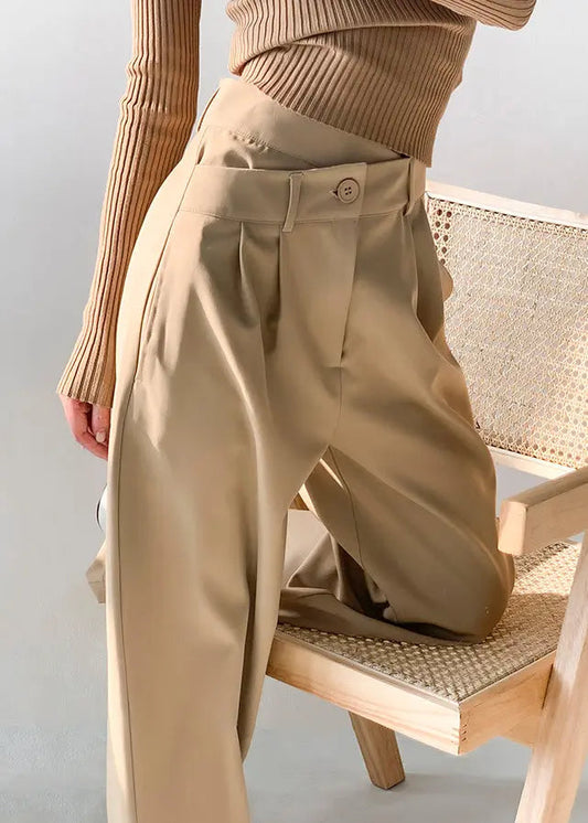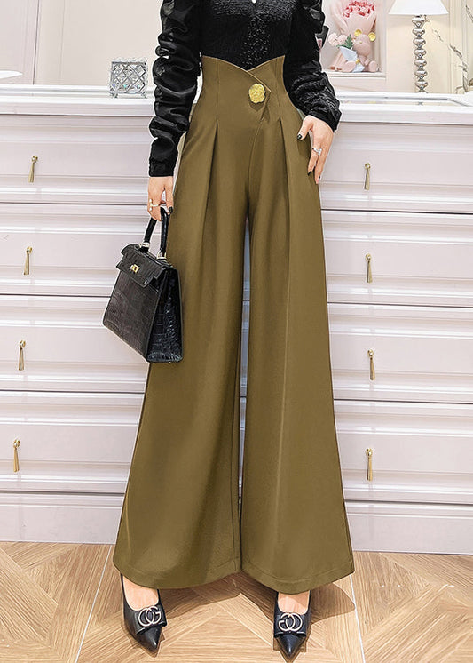 Pantalon large taille haute en élasthanne avec poches style bohème kaki pour l'automne LY9049