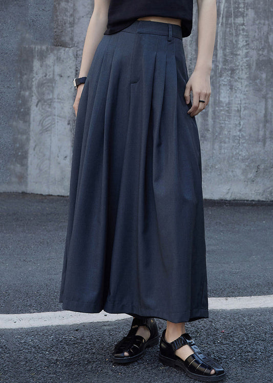 Jupe pantalon en coton patchwork taille haute froissée avec poches grises chics Automne LY9052