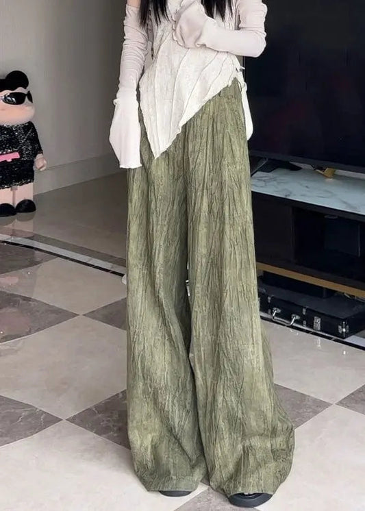 Pantalon patchwork taille haute froissé vert français en coton automne LY9072
