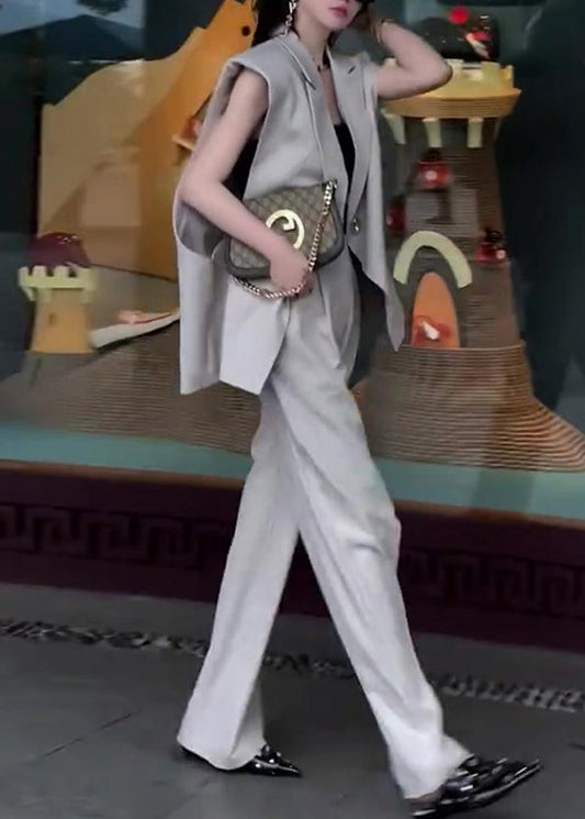 Ensemble deux pièces en élasthanne avec gilet patchwork cranté gris français et pantalon large sans manches LY9128