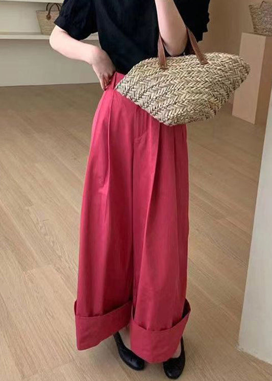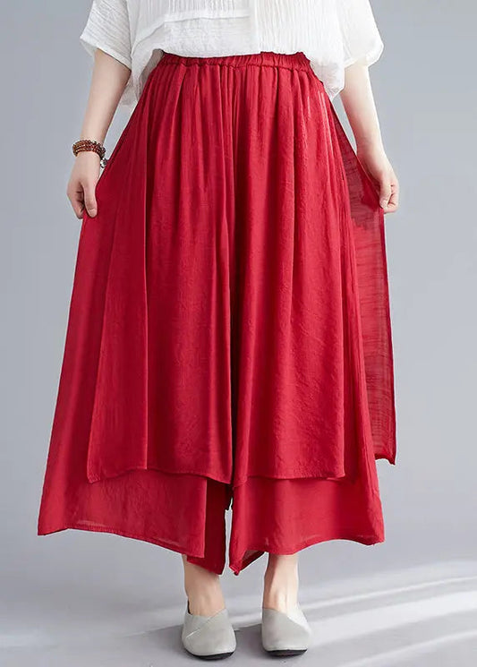 Pantalon large en lin drapé à taille élastique rouge style été LY8652