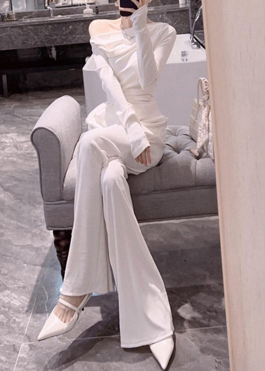 Ensemble deux pièces en coton avec haut et pantalon en patchwork à poches latérales blanches et ouvertes, automne LY9046