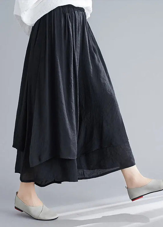 Jupe pantalon en lin noir biologique à design asymétrique pour l'été LY8685