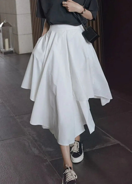 Jupe pantalon en coton patchwork à poches asymétriques blanches uniques pour l'été LY9068