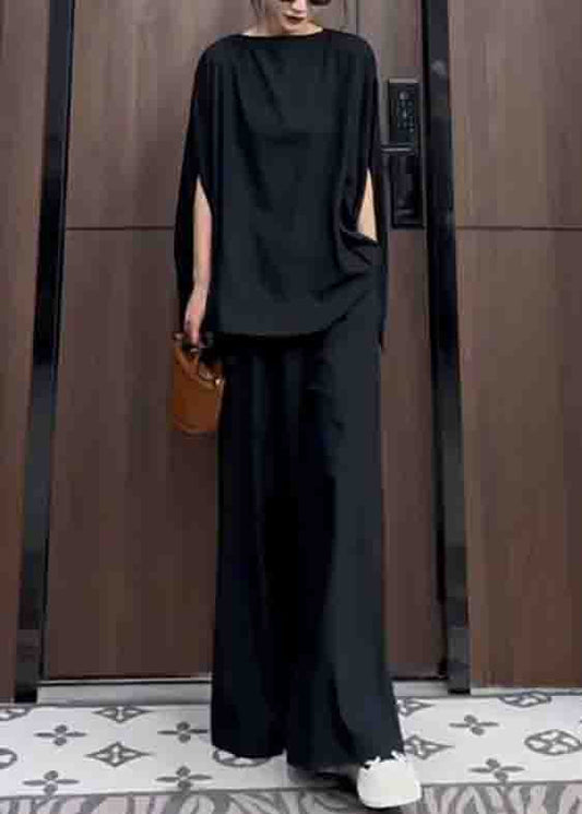 Haut et pantalon patchwork à poches noires pour femmes, ensemble deux pièces d'été LY9043