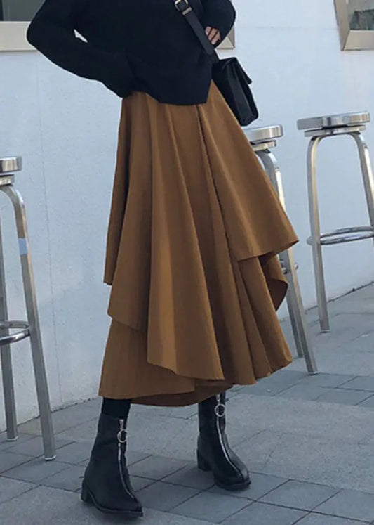 Jupe pantalon asymétrique taille haute en coton patchwork caramel pour femme Automne LY9071