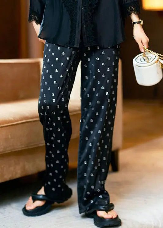Pantalon droit en coton patchwork avec poches noires fines et lettres en zircon pour l'automne LY8595
