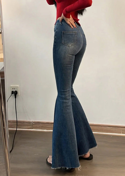 Jean évasé patchwork bleu fait main avec poches pour l'été LY7939