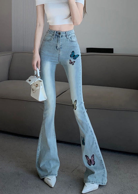 Pantalon évasé patchwork bleu clair avec poches Art Summer LY7928