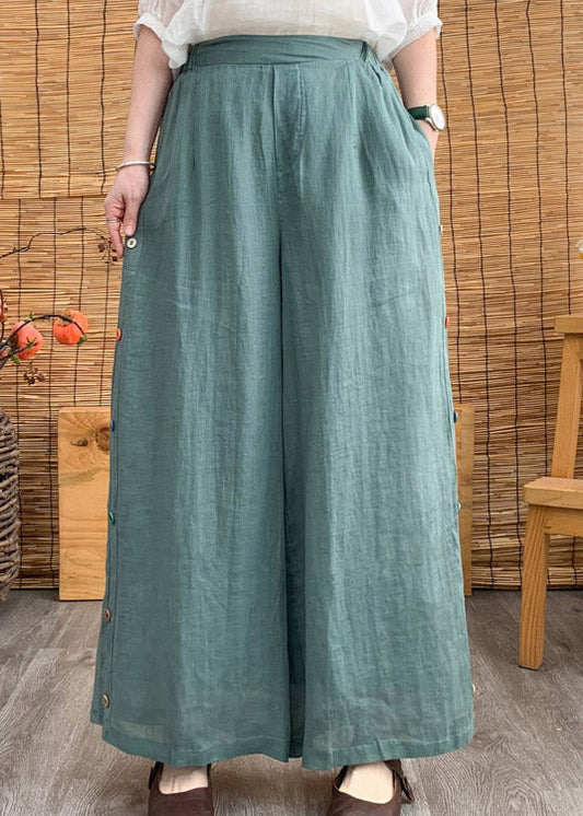 Pantalon sarouel décontracté vert avec poches et taille élastique pour l'été LY4489